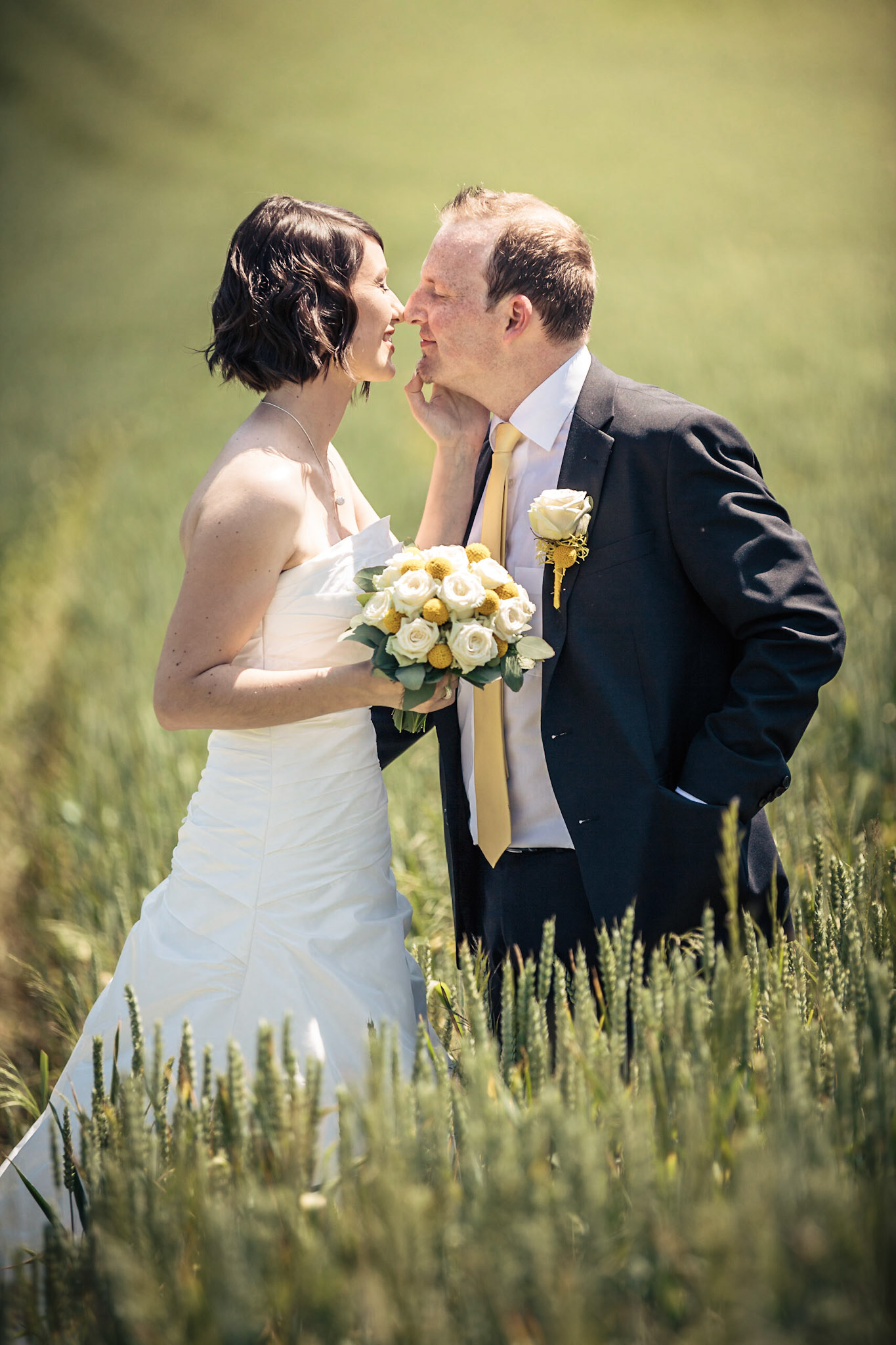 Wedding ceremony in the compay of friends and family took place inside the castle in an old medieval hall. Afterwards we created wedding portraits in the castle itself, in the nearby park and at the young wheat field. I saw images of intimacy and seduction, naughtiness and tenderness and of course joy and devotion to eachother and I captured that on the photos. It is always nice for me to see those photos again.